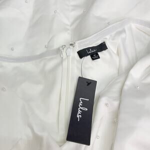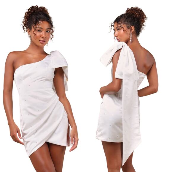 Lulus Posh Behavior White Pearl Bow One-Shoulder Mini Dress size M NWT
