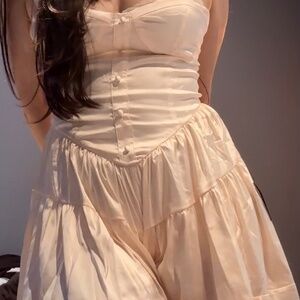 Don't forget to pack the Lulus Positively Adorable Cream Satin Tiered Bustier Romper for all your summer getaway plans! Lightweight sleek woven satin shapes tank straps and a flattering scoop neckline with contrasting white lace trim. Bustier-style bodice, NOTE: the pictures of the video are for the size M I add it for reference, the one I’m selling is size L