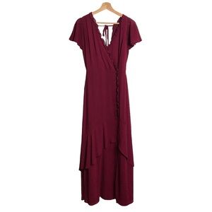 Lulu’s Pour the Champagne Burgundy Ruffled Backless Maxi Dress Small