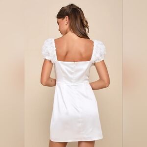 Lulus Precious Enchantment White Satin Floral Puff Sleeve Mini Dress S Wedding NWOT. See all pictures for details.