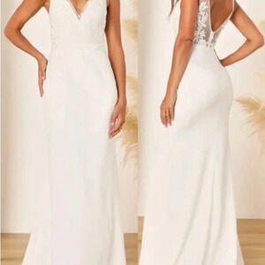 Luluās Precious Promise White Satin Embroidered Lace Mermaidā Dress Sz #0322