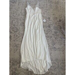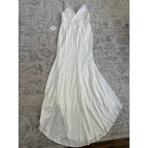 Lulus Precious Promise White Satin Embroidered Lace Mermaid Maxi Dress Small NWT