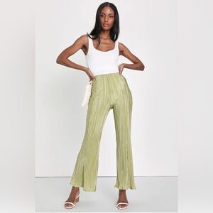 Lulu’s Pretty Flair Lime Green Pleated High-Waisted Flare Pants size XS