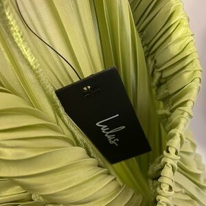 Lulu’s Pretty Flair Lime Green Pleated High-Waisted Flare Pants size XS. New with tags! See pictures for approximate measurements. Elastic waistband.
