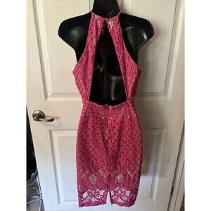 Lulus Pretty In Pink Sleeveless Lace Skater Dress Women's Size Medium
