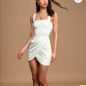 Lulus Proper Attire Ivory Floral Jacquard Faux Wrap Mini Skirt w/ Pockets!