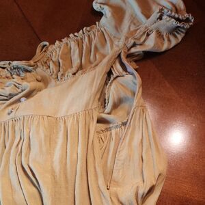 Lulus Good Side Light Green Short Sleeve Bustier Bohemian Midi Dress With Slit, XS in Great Condition.