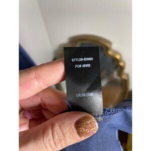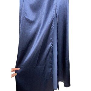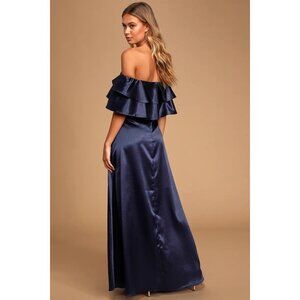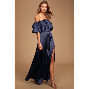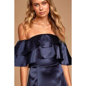 Lulus Pure Happiness Navy Blue Dress Size Small Satin Off-the-Shoulder Long New