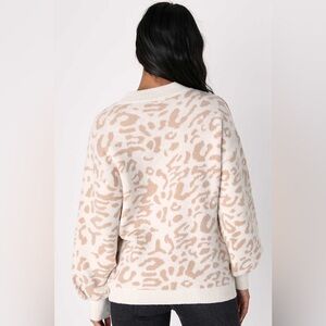 Lulus Purr-fectly Toasty Animal Print Ivory and Beige Pullover Sweater Small