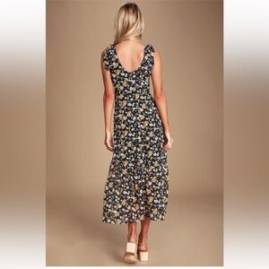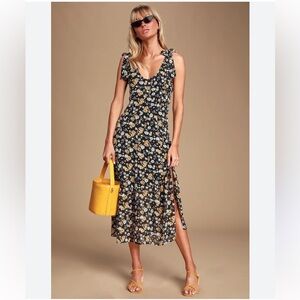 Lulus Lulu’s Quite a Sight Black Floral Print Tie-Strap Midi Dress
