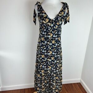 Lulus Quite a Sight Black Floral Print Tie-Strap Midi Dress