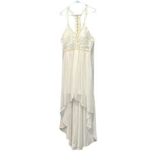 Lulus Racer Back V Neck Lace Waist Hook Eye Closure Lined Hi Low Dress Cream L
