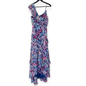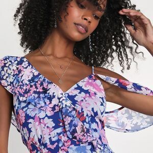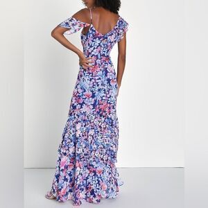 Lulus Radiant Blue Floral Print Chiffon Maxi Dress Size Small
