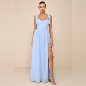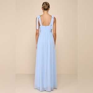 Lulus Radiant Charisma Light Blue Chiffon Ruched Tie-Strap Maxi Dress XL