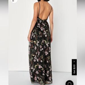 Lulu’s Radiant Fantasy Black Floral Embroidered Tulle Maxi Dress M NWT in packag