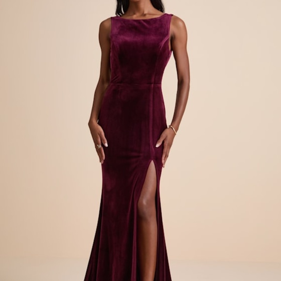Lulus Ravishing Poise Burgundy Velvet Cowl Back Sleeveless Maxi Dress Red