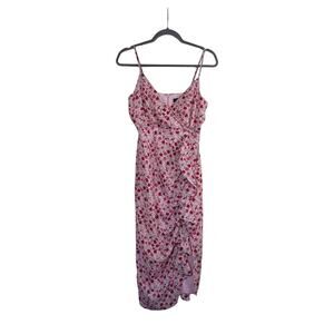 Lulus Reason For Romance Pink Floral Surplice Ruffled Midi Dress, Size Small