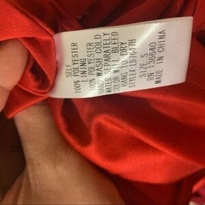 Worn twice. 100% Polyester. Lined. A network of straps deck out an open back before turning into a steamy cage neckline that sits above a soul try sweat heart bodice. A woven full skirt emerges from gathering at a fitted waist. Exposed back zipper/ hook clasp. hand wash cold.