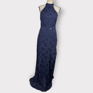 Lulus Red Carpet Ready Halter Column Gown Navy Blue Women's Small NWOT
