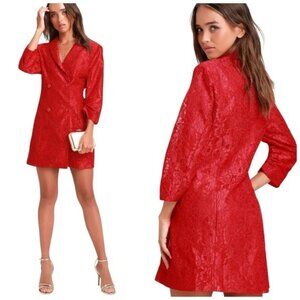 Lulus Red Lace Blazer Dress S NWT Ronan Double Breasted Romantic Coquette