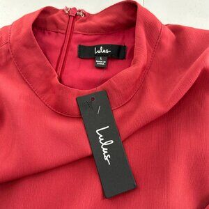 Lulus Red Long-Sleeve Cutout Waist Mini Dress Size L Ruffle Rusty Rose Mock Neck