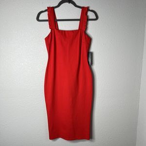 Elegant red dress with ruffle straps. Perfect for any occasion. Sleek and stylish design. Bought NWT from Poshmark, wore once and is in excellent condition. Smoke free home.