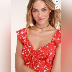 Step out in style with this vibrant red sundress from Lulu's, featuring a playful ruffled A-line silhouette and flutter cap sleeves. The scoop neckline and delicate white floral print add a touch of elegance, making it perfect for a wedding guest or a night out. Its light, airy fabric ensures comfort and movement, while the mini length adds a flirty finish.
