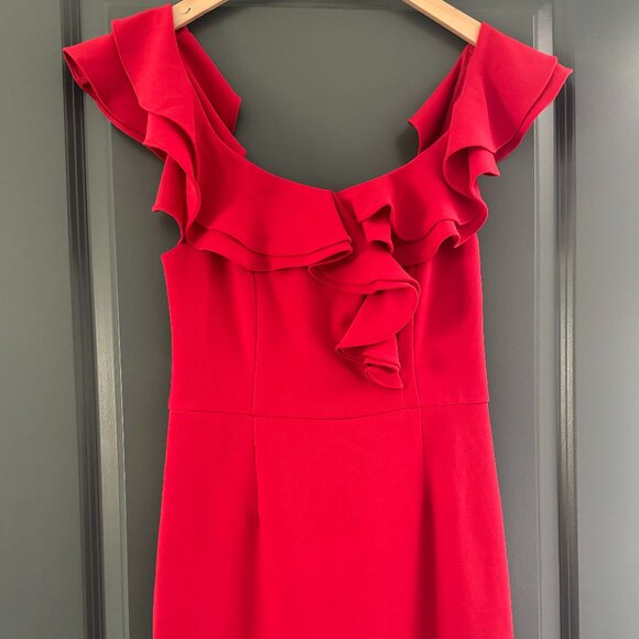 Lulus Dance Floor Diva Red Ruffled Bodycon Dress. Lightweight, stretch woven fabric. Princess-seamed bodice.