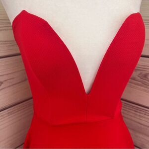 Lulus Red Strapless Deep V Neckline Fit & Flare Dress