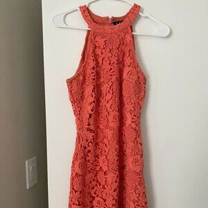 Lulu's Red-Orange Dress Lace Mini-Dress