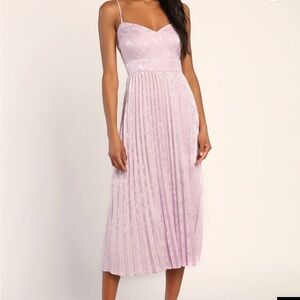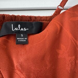 Lulu’s Regal Romance Rust Floral Jacquard Pleated Satin Midi Dress
