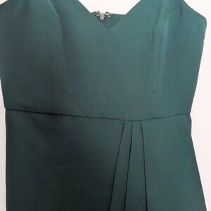 I love the cut of this dress and it's in the most gorgeous emerald green color. I bought it to attend a wedding, wore it once, and never touched it again! So I'm passing it along now. It's SO flattering and I love that it's got a unique flair with the swooping skirt cut and how it's gathered at the waist.