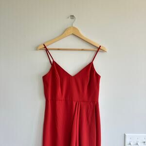 - Features: Adjustable spaghetti strap, V-neck, sleeveless, overlapped, high low hem, lined, hand wash, pleated, midi length, hidden back zip closure, comfort, breathable