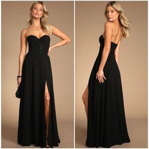 Lulus Remember This Moment Black Rhinestone Strapless Maxi Dress Size Medium NEW