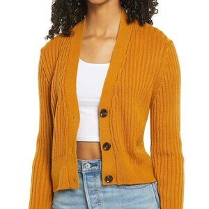 Lulus Rib Crop V-Neck Button Cardigan Sweater in Camel Color