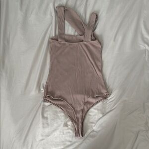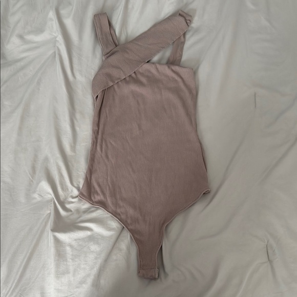 Chic and comfy bodysuit for kids. Features a stylish cross-strap design. Perfect for everyday wear. Super soft ribbed material, worn only once, in perfect condition. Maybe/taupe color.