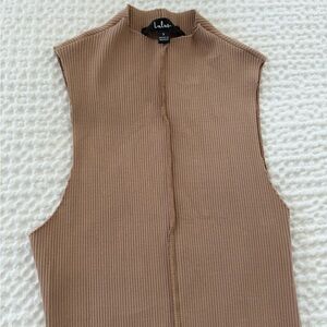 Stylish ribbed top bodysuit in a versatile tan color. Perfect for any occasion. Like new. Worn once.