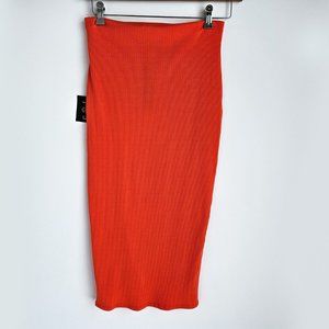 Lulus Ribbed Knit Bodycon Skirt Womens L Stretchy Orange Brand New w/ Tag NWT