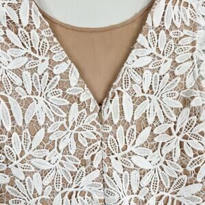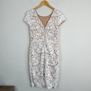 Lulus Right Sheer, Right Now White Lace Bodycon Dress. Excellent condition, no signs of wear. Sheer cap sleeves and a rounded neckline top this lovely go-to dress made from sheer, white, crocheted lace over a nude lining. Princess-seamed bodice and fitted waist sit above a slinky bodycon skirt. V-back and hidden zipper/clasp. Lined.