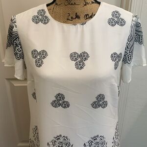 Lulu’s Riverside Floral Cream and Black Print Shift Dress Size S. Excellent condition. Lightweight lined short sleeve dress with back zipper. Bateau neckline, darted shift bodice mini skirt.