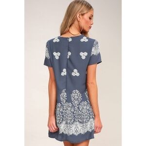 Lulu’s Riverside Slate Blue Floral Print Shift Dress Short Sleeve Women’s S
