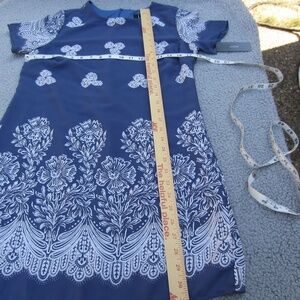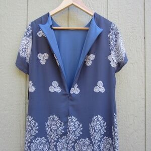 Lulu’s Riverside Slate Blue Floral Print Shift Dress Short Sleeve Women’s small Full Lined