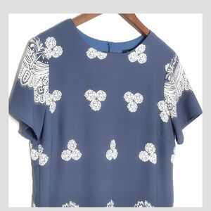 Lulus Riverside State Blue White Floral Print Shift Dress Short Sleeve Mini Length Size Small