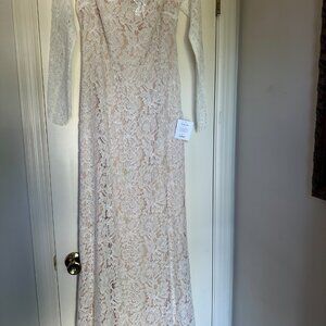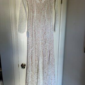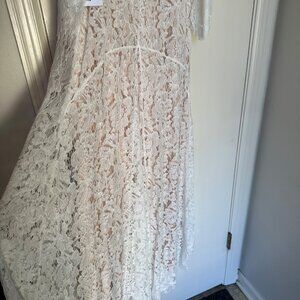An evening spent in the Lulus Romance Dreamer White Lace Off-the-Shoulder Maxi Dress is one you'll dream about for days to come! Sheer floral lace creates a stunning overlay atop a nude knit liner as it shapes an off-the-shoulder neckline (with hidden no-see back zipper and silicone stays inside the shoulders for security). The dress is in pristine, never-worn condition with all tags intact from a pet and smoke-free home.