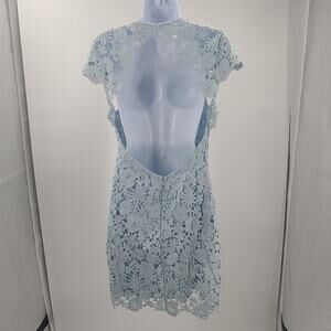Lulu's Romance Language Baby Blue Crochet Lace Dress Size Large Cocktail party