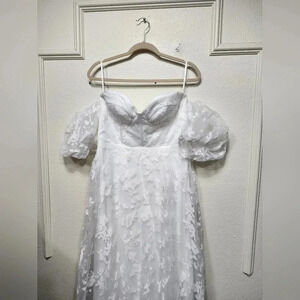 Lulu's Romantic Dedication White Floral Off-the-Shoulder Gown Wedding Party. New without tags. See all pictures for details. Size currently SOLD OUT.
