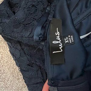 Lulu's Romantic Fate Navy Blue Lace Bodycon Mini Dress