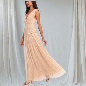 lulus maxi dress, romantic moment dress, nude cream dress, mesh overlay gown, boho bridal dress, fairycore dress, whimsical maxi dress, prom dress small, floor length dress, fitted waist dress, plunging neckline, feminine gown, wedding guest dress, ethereal dress, bridal shower outfit, bohemian style, dreamy dress, elegant dress, bridal maxi, whimsical wedding dress, summer gown, goddess dress