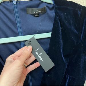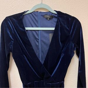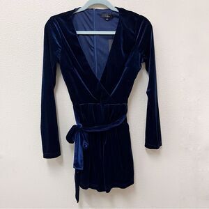 Lulu’s Romantic Moves Navy Blue Velvet Long Sleeve Romper M
