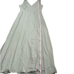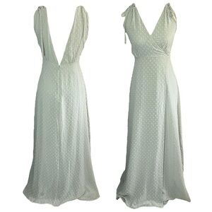 Lulus Romantic Possibilities Sage Brush Swiss Dot Maxi Dress sz L